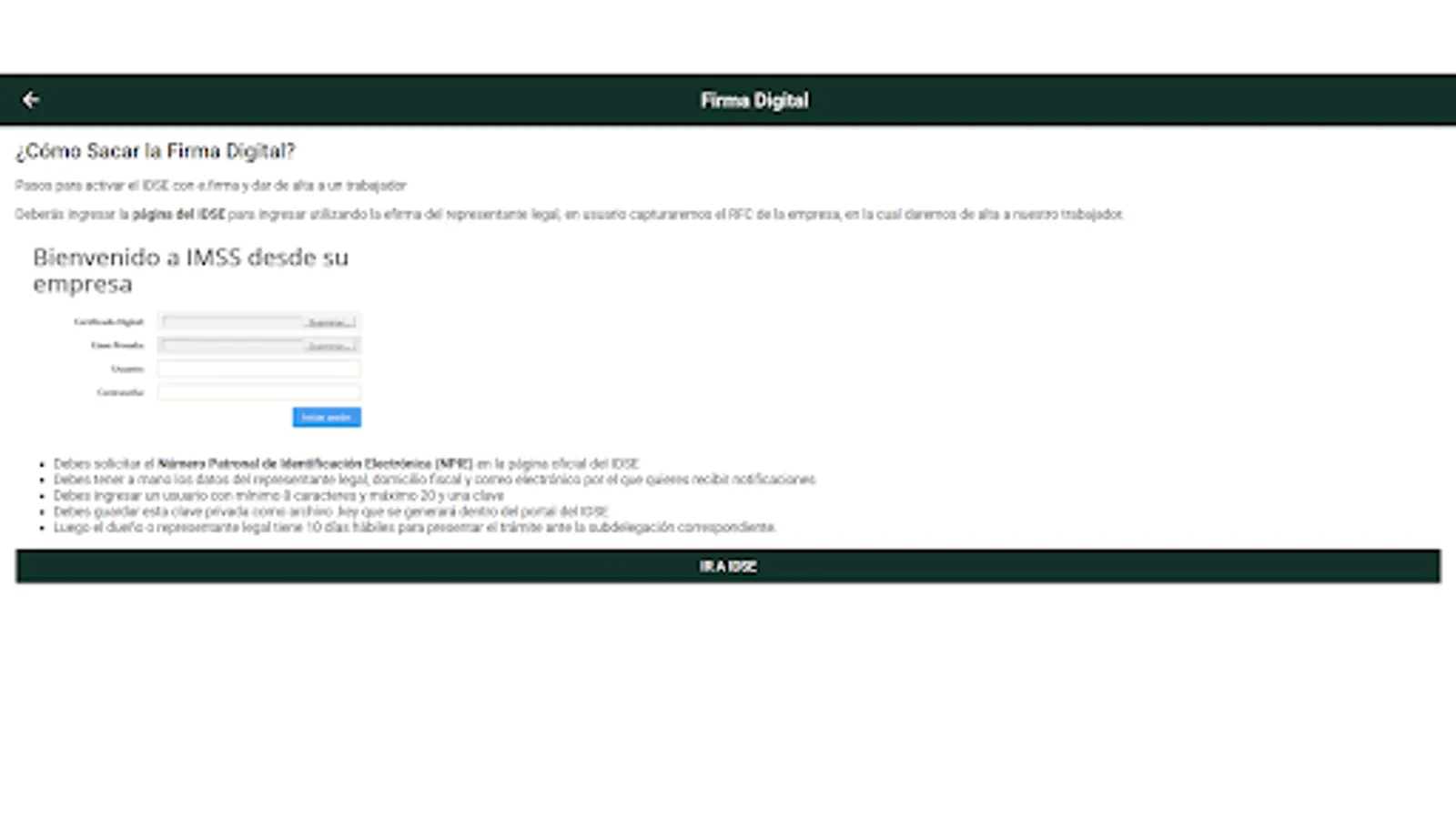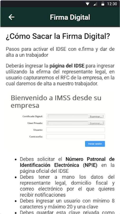 Disclaimer: The application is an educational and assistance tool designed to provide information and tutorials on the IDSE (IMSS) platform used in social security procedures in Mexico. We want to emphasize that the application does not have any affiliation, relationship or direct link with any government entity, including the Mexican Institute of Social Security (IMSS) or any other official body. All information is publicly accessible at: https://idse.imss.gob.mx/imss/ .