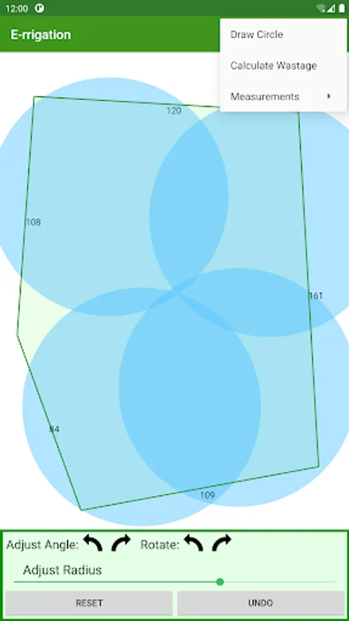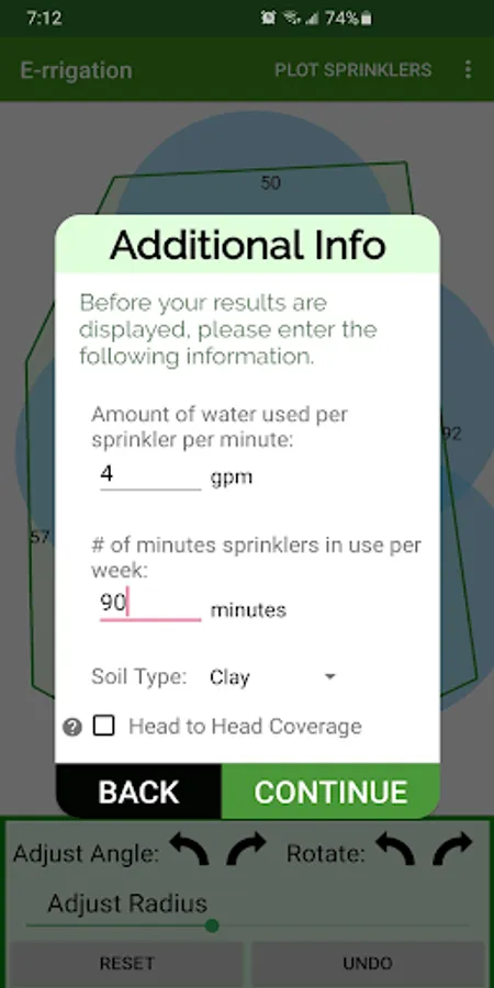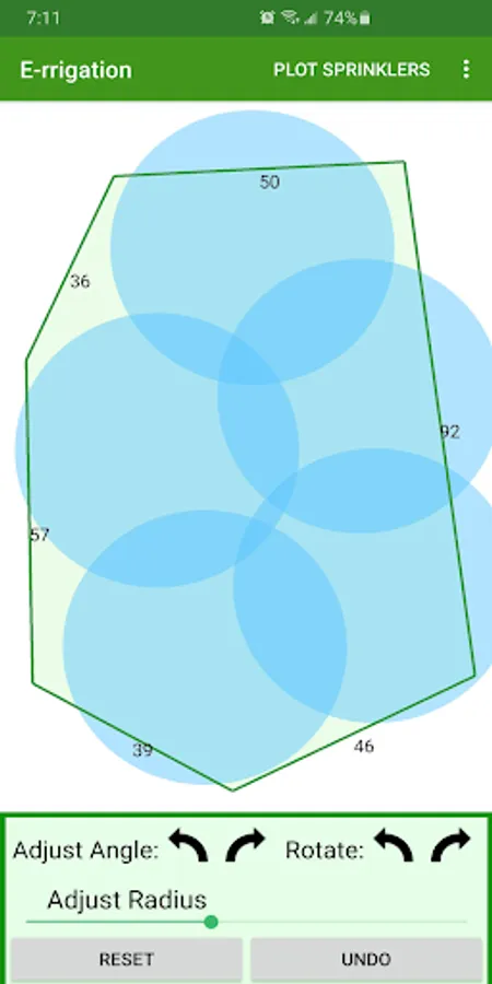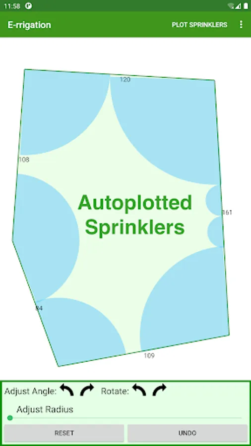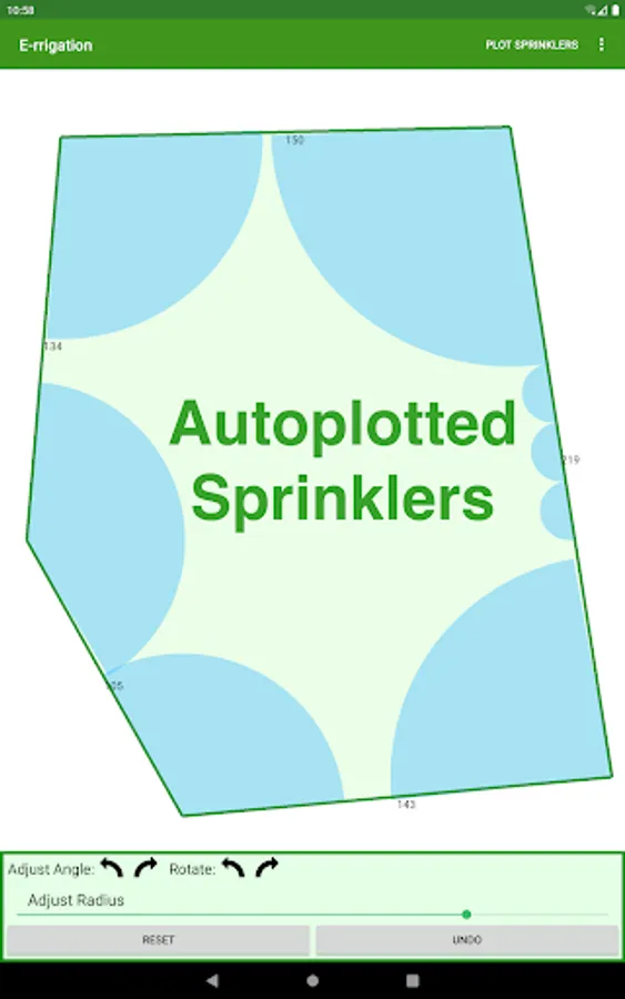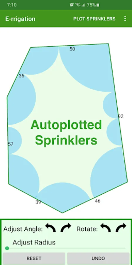 2. From there, you can plot sprinklers and adjust the radius, angle, and rotation. E-rrigation even has an auto-plot feature to place sprinklers in tough spaces.