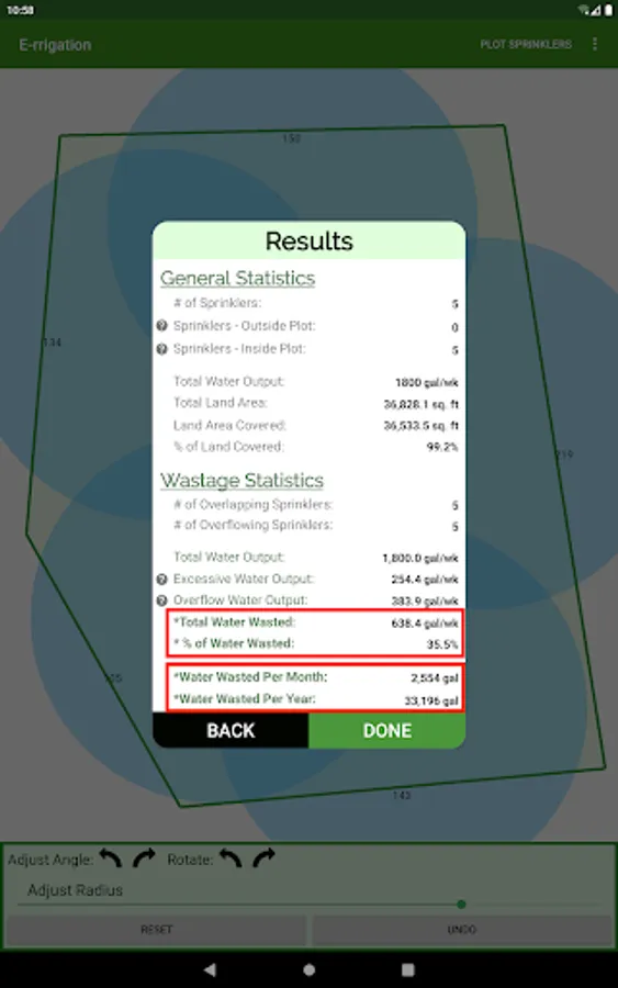 You can use this feedback and the auto-plot feature to optimize your sprinkler placement and water usage, potentially saving you thousands of dollars in the long run!