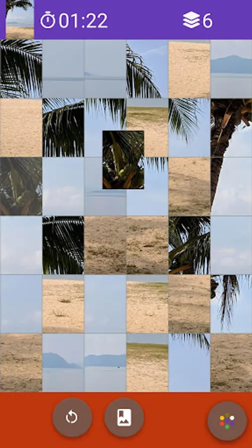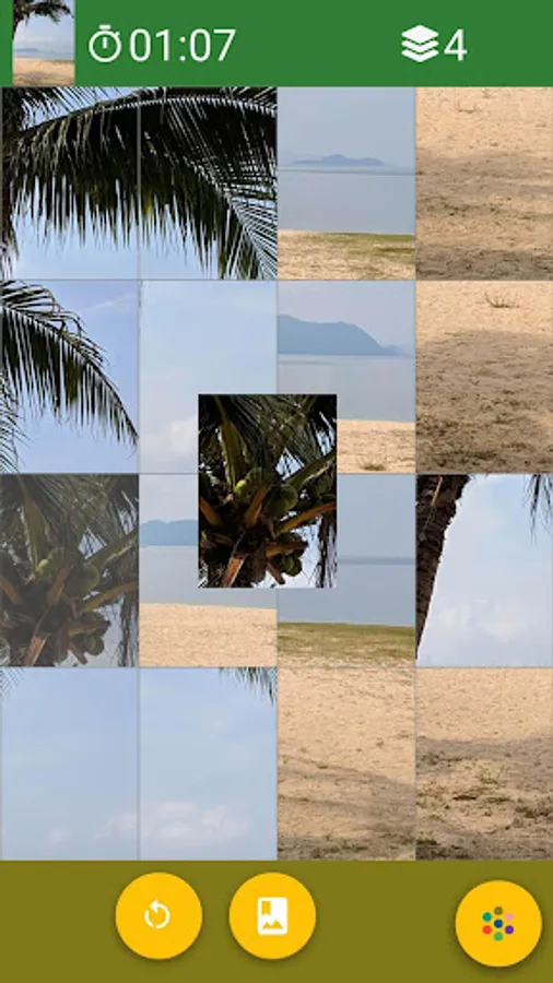 Touch image tile, you get a semitransparent floating image, drag the floating image on image tile you want to swap. Release your finger, image tile swap will finish.