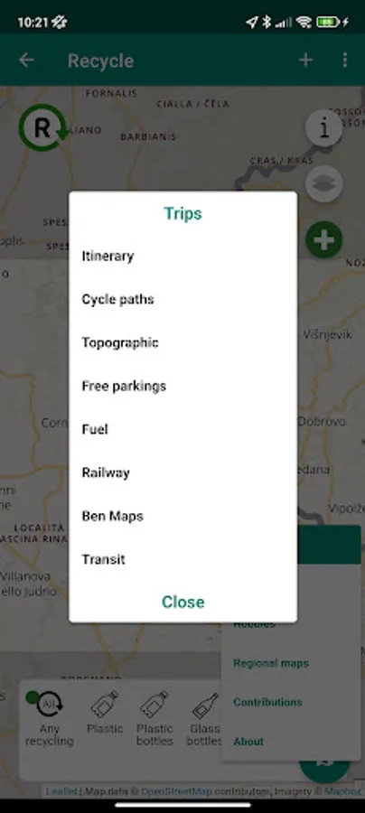 The maps within the application are organized into well-defined categories, each designed to cater to specific user needs. For example, the "Travel" category offers maps that are useful for planning routes and navigating unfamiliar places. The "Education" category focuses on educational maps, which can be beneficial for both students and teachers. The "Hobbies" category includes maps related to points of interest and recreational activities. "Regional Maps" cover specific geographic areas, providing refined and localized details. Lastly, the "Contributions" category might enable users to create and share their own customized maps.