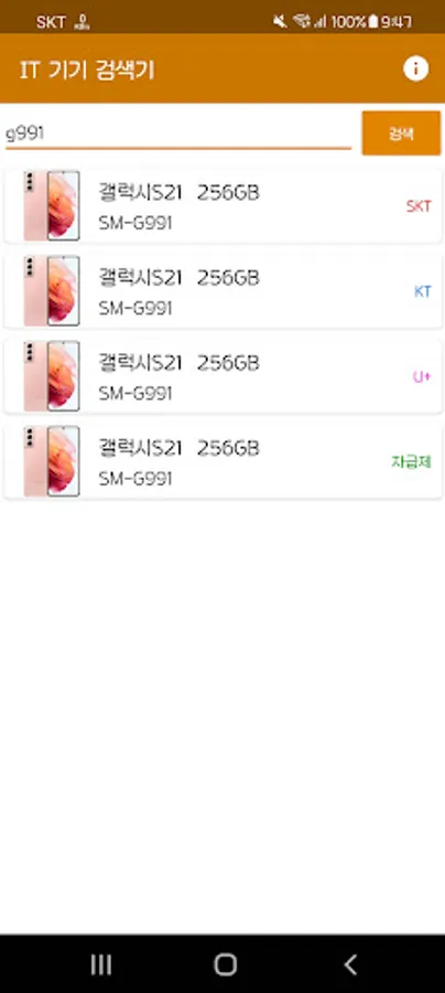 You can search for various IT devices such as feature phones, smartphones, wireless earphones, and smart watches.