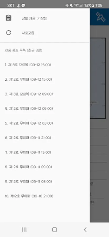 You can view other typhoon notifications by opening the left menu. You can also view real-time satellite images.