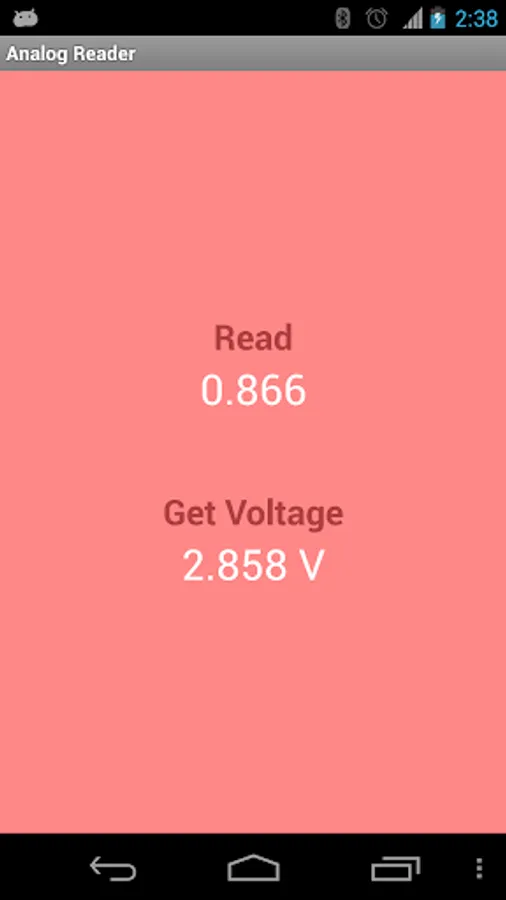 This application reads the input voltage from the analog input pins of IOIO and IOIO-Q. The selected port pins are AN5 or pin 31, which are connected to the resistor. This application displays the measured values in Text View.