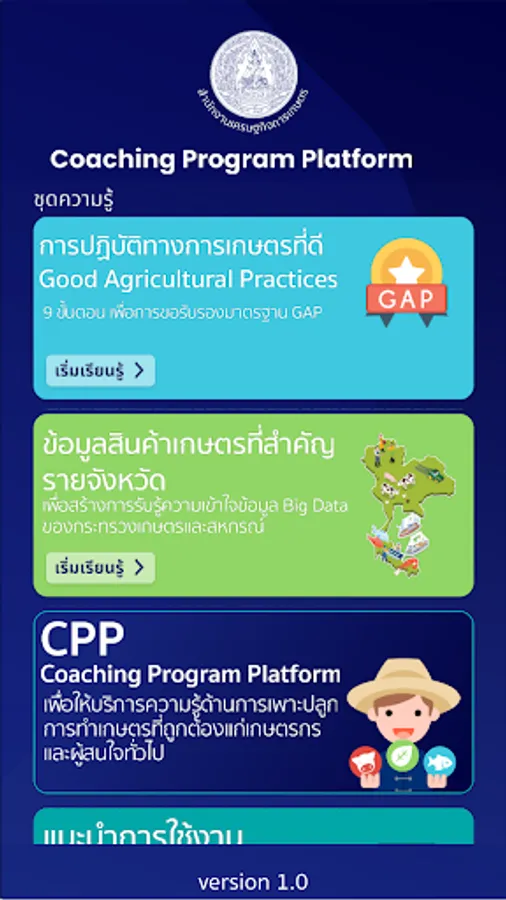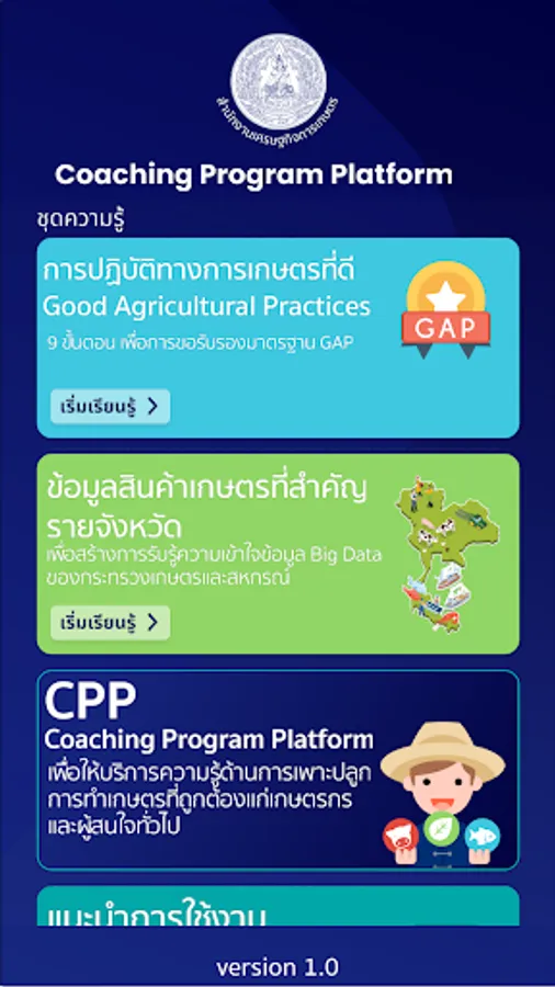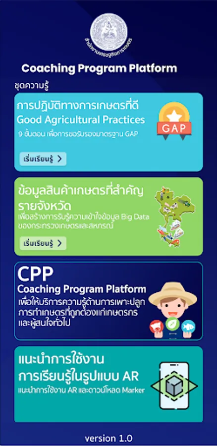 Providing accurate agricultural knowledge to farmers and general interested people for farmers and interested parties. Access to information on agricultural knowledge, prototypes of 5 types of agricultural products, namely rice, cassava, rubber, cattle and tilapia.