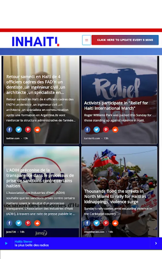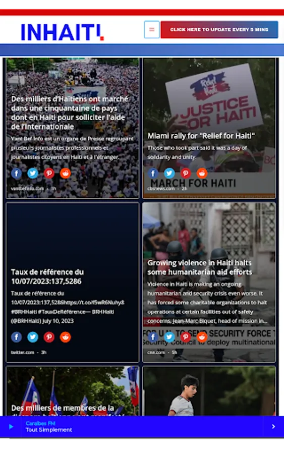 In Haiti vous permet de suivre en temps réel tout ce que les médias d'Haïti et du monde publient concernant Haïti ou ayant un certain intérêt pour les Haïtiens.
