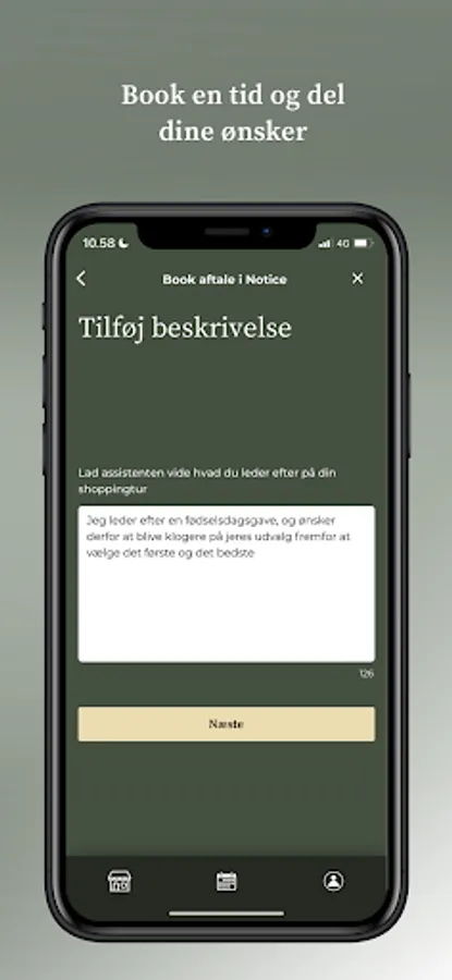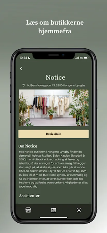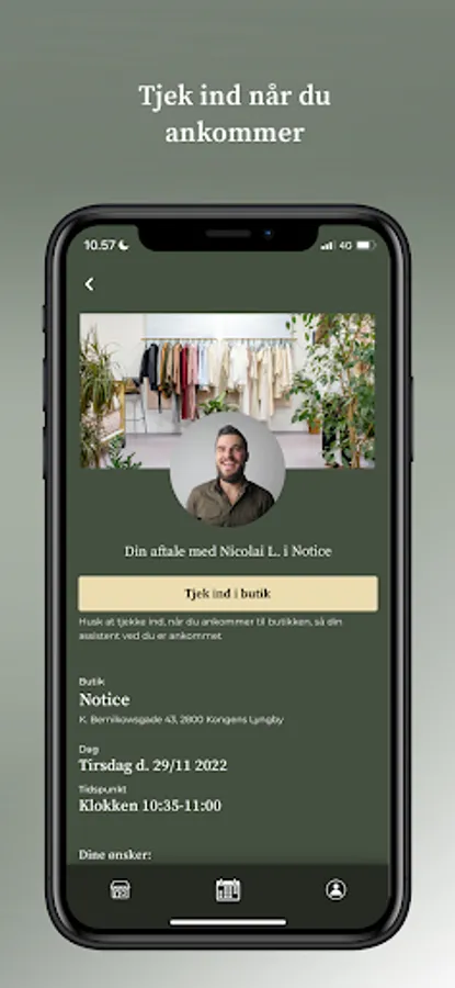 To book an appointment through the app, you must choose which store you want to visit, which store assistant you would like to be served by and when. In addition, you must add some information about what you are looking for and what challenges and needs the shop assistant must be aware of. If you are prevented from attending, you always have the option of canceling your appointment.