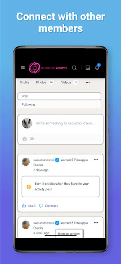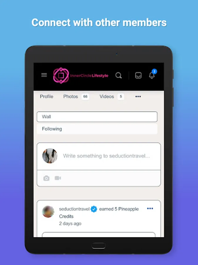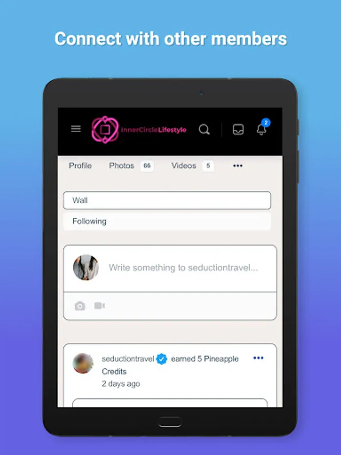Join the modern open lifestyle social community. Just like Facebook but for open-minded, non-monogamous singles and couples. Connect with others, share pics/videos, post for everyone on the public activity feed or on an individual’s wall and follow other members. InnerCircle Lifestyle is woman owned and operated with real staff that understands and who is involved in the lifestyle. Now every member earns pineapple credits that they could redeem for items at our lifestyle store or for tickets to any lifestyle event of your choice.