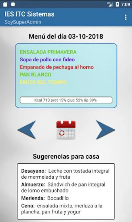 Additionally, the application also offers alternatives and suggestions to consume at home, since it is very important to complement a healthy diet with the rest of daily meals. Each day, in addition to showing the daily menu offered by the school, the application will make a series of suggestions to complement our diet from home.