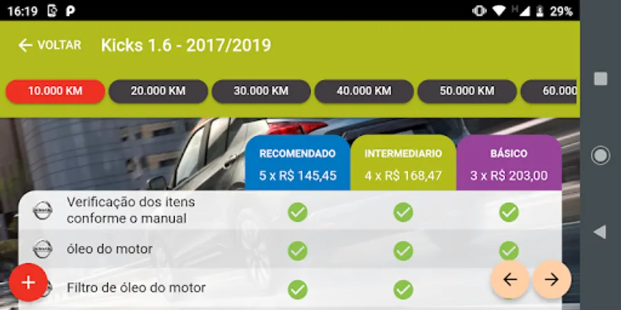 The service menu is fully customized according to the dealer's needs, in addition to bringing menus with a menu of accessories and automotive aesthetics, tire sales and body shop and painting services.