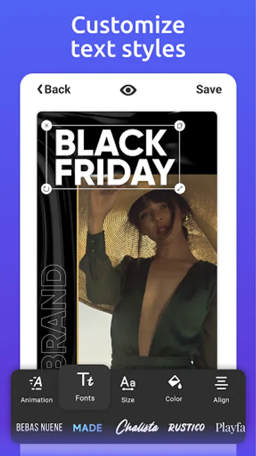 - Pick one of 15 stylish fonts and upload your own. Customize style: Bold, Italic.
