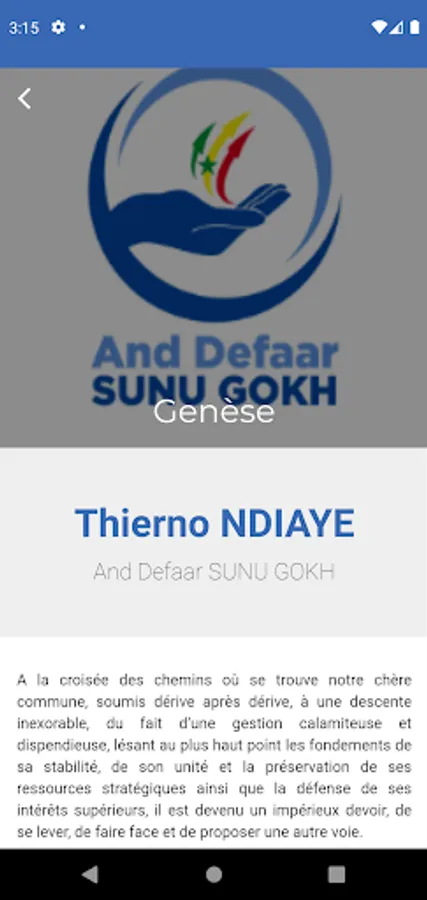 And Defaar Sunu Gokh Ak Thierno Ndiaye is a political organization. It is officially recognized. And Defaar Sunu Gokh is structured as a party board. The movement has several cells in the commune of Gueule Tapée Fass Colobane.