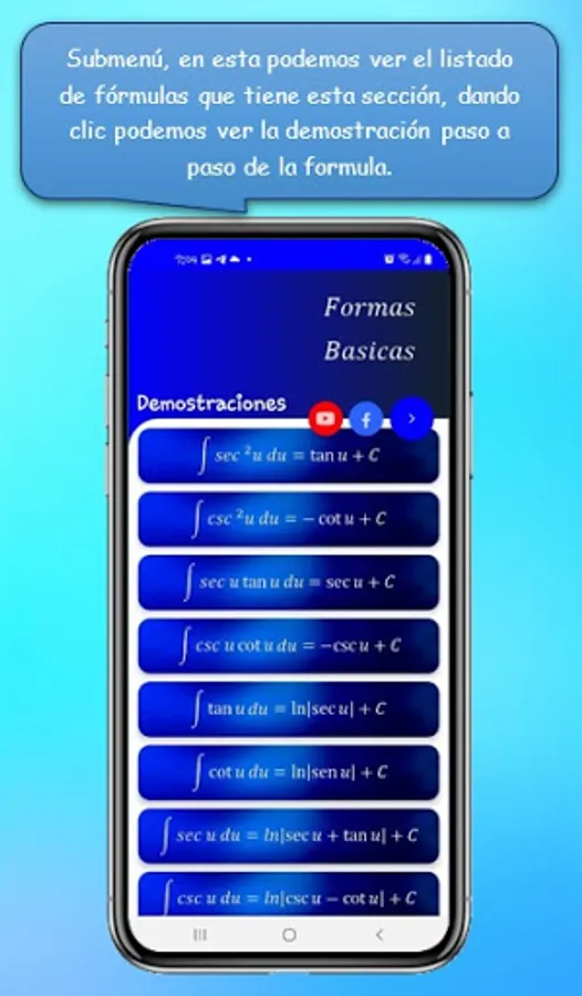 In this application, the demonstrations of the immediate formulas found in the back of the book "Stewart 7e" will be carried out, both for integrals and derivatives.