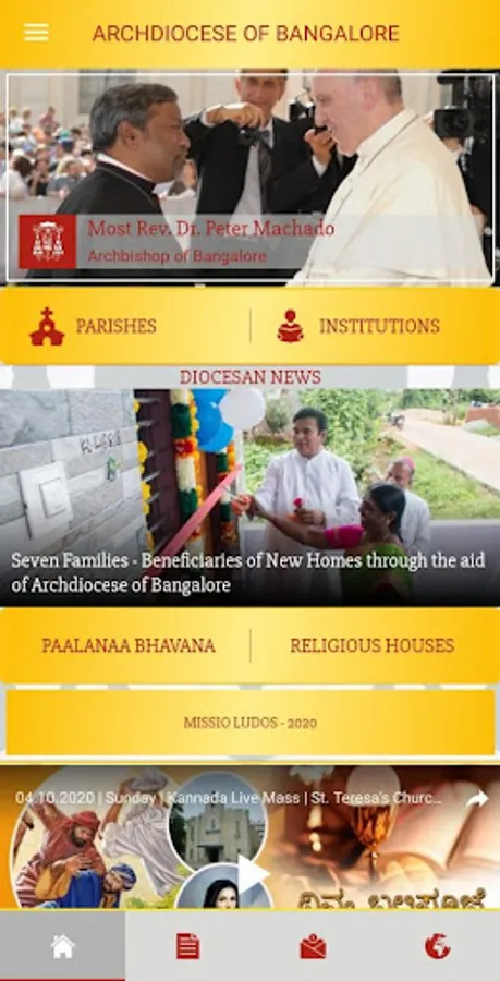 The Mobile App, “Archdiocese of Bangalore”, is designed and hosted by the Archdiocesan Communication Center, is an apt tool to stay connected with the Bangalore Archdiocese and receive up to date information of its parishes and institutions. Users may also use the app to share the various news and events of the Archdiocese – including videos and other media contents.