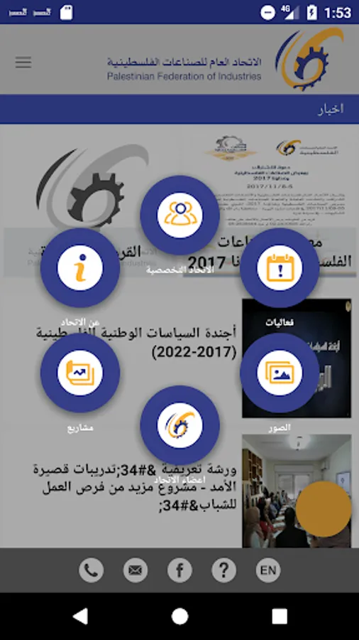 General Union of Palestinian Industries was established in 1999 as a private sector, the national organization representing the industrial sector in Palestine through specialized industry associations and is, as the General Union works on the development of the industrial sector, it concentrated main role of the General Union in the rehabilitation and training of members and represent them effectively and defend their interests the relevant local, regional and international institutions, as the General Union says the development of effective policies in the development of the industrial sector and the development of the local economy