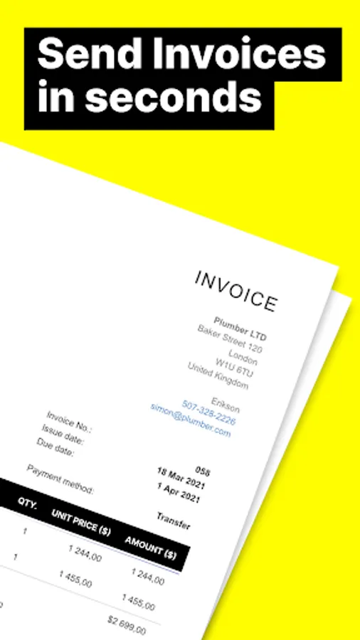 - Create and send professional invoices to customers quickly and easily