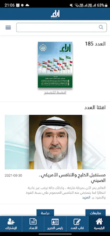 " آراء حول الخليج" مجلة شهرية معنية ومتخصصة بشؤون منطقة الخليج وقضاياها والتحديات والمخاطر التي تواجهها، وكذلك القضايا الاستراتيجية وقضايا التنمية المستدامة بمعناها الشامل، وأيضاً معنية باستقرار وأمن منطقة الخليج.
