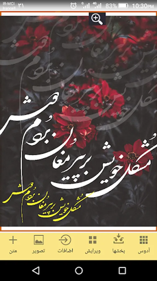 با نرم افزار آدوس، قلم خوشنویسی شکسته نستعلیق تقریبا بصورت کامل روی اندروید در دسترس شماست و درکنار خوشنویسی میتوانید عکس نوشته هایی در محیط کار طراحی کنید و در گالری ذخیره نمایید.