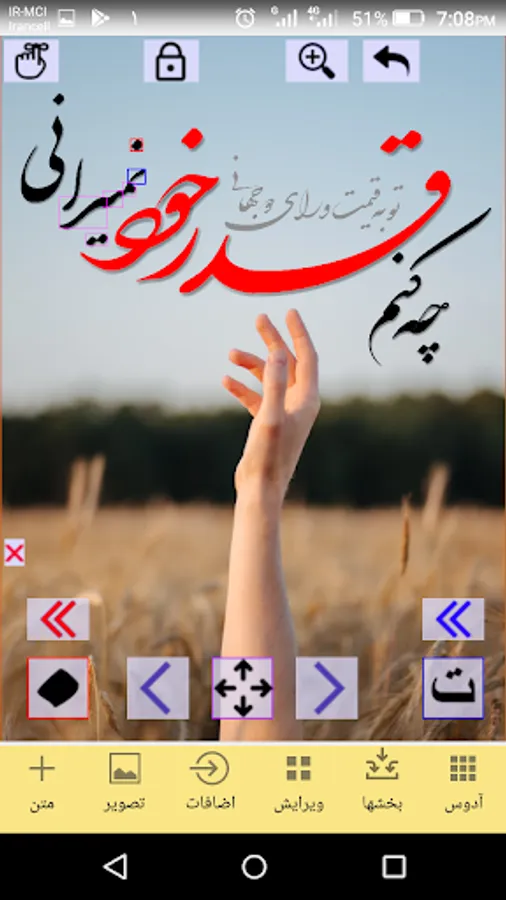 2-عدم امکان چرخش حروف(فعلا)