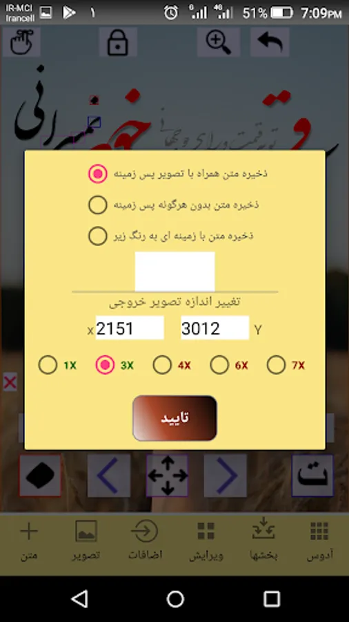4-ذخیره متن طراحی شده بدون پس زمینه و یا با پس زمینه با کیفیت مناسب و قابل انتخاب