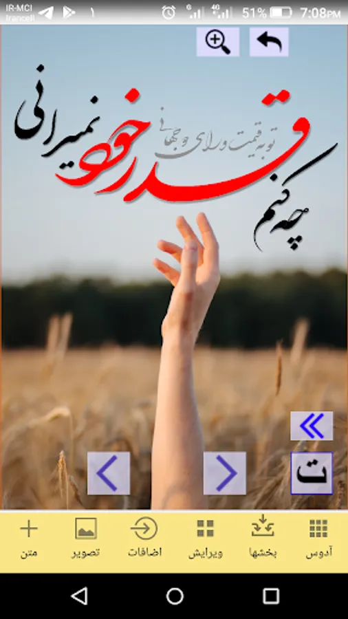 1- کار دقیق با قلم خوشنویسی شکسته نستعلیق . حروف و کلمات و نقطه ها و سرکش ها و سایر مخلفات هر کلمه را می توانید با لمس و هم از طریق ابزار درونی آدوس حرکت داده و جابجا کنید.