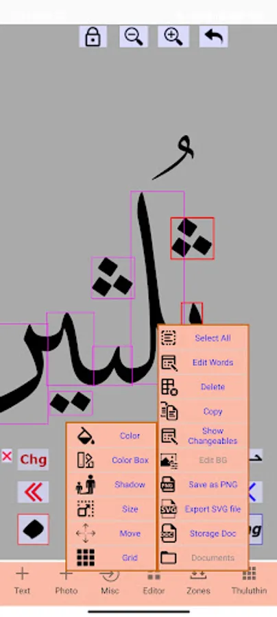 In the Thuluthin itself, it is possible to write on the photo, but for the video, you can use the Thuluthin output and put it on the video with App such as "KineMaster"