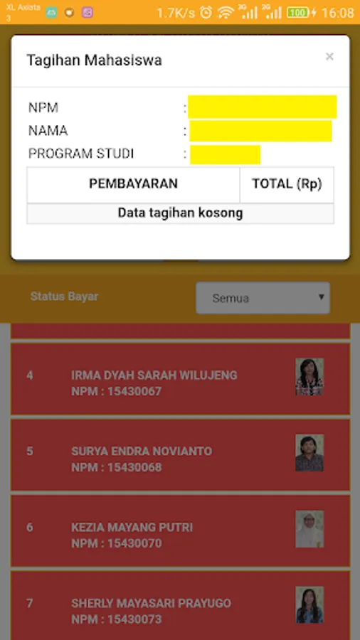 Applications to view the list of participants in the semester exams Wijaya Kusuma Surabaya University campus. Applications can be used by the invigilator Universitas Wijaya Kusuma Surabaya. Photo details and a list of charges examinees can also be seen in this application. This application is based on android webview.