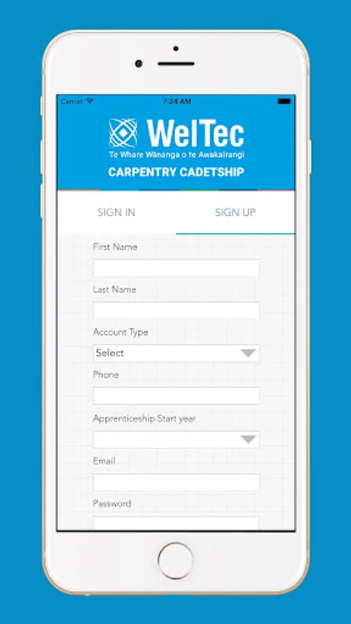 The Weltec Carpentry Cadetship app is a tool that can be used by Weltec carpentry students and cadets to capture the notes and locations of their on-site practical work for assessment.