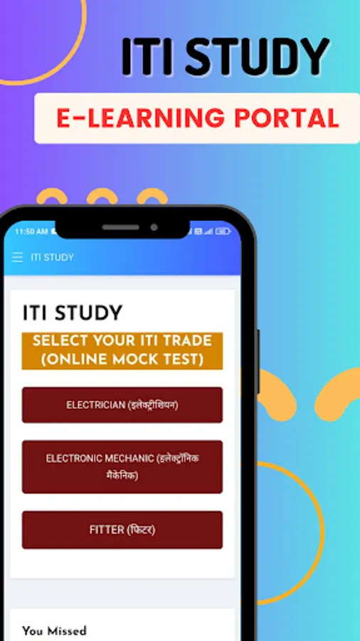 ITI Study is online E-Portal for ITI students. This app contains online mock tests contains syllabus from bharat skill, NCVT & NIMI. ITI study compiles data from all other plateforms and provides it at single plateform. We collects Multiple choice questions (mcq) from official pdfs and deliver them in online mock test form to the students.