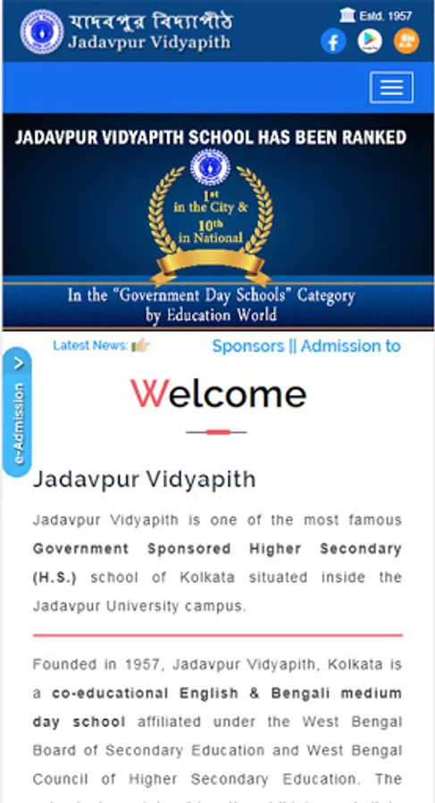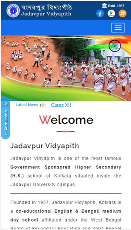 Founded in 1957, Jadavpur Vidyapith, Kolkata is a co-educational English & Bengali medium day school affiliated under the West Bengal Board of Secondary Education and West Bengal Council of Higher Secondary Education. The school aims at inspiring the child to assimilate constructive thinking so that vivacity and virtue co-exist in the storehouse of the mind of the child and to enable them to build a good personality.