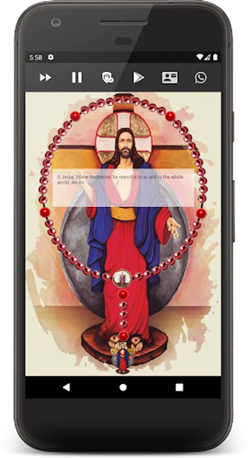 Third bead: "Eternal Father, grant us mercy through the Blood of Jesus Christ, Your only Son; grant us mercy, we beseech You. Amen."