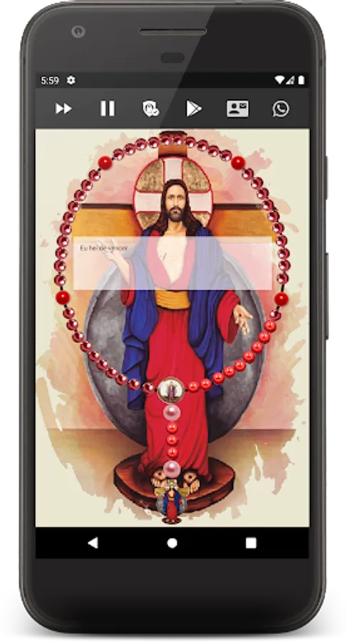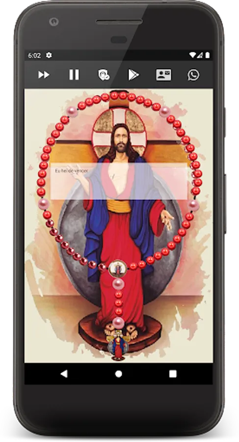 On crucifix pray: "O Jesus, Divine Redeemer, be merciful to us and to the whole world. Amen."