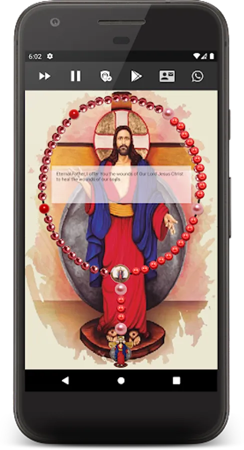 On all the large (Our Father) beads pray: "Eternal Father, I offer You the wounds of Our Lord Jesus Christ to heal the wounds of our souls."