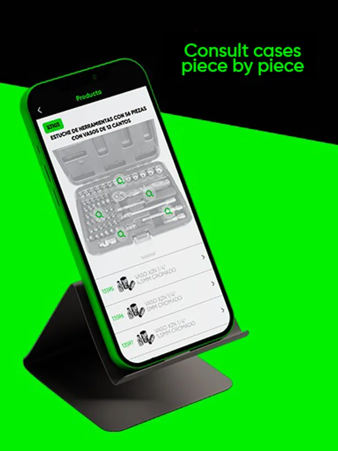 Capture QR codes from the catalogue or the packagings and go into the tool case / kit spare parts list.