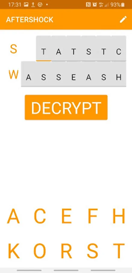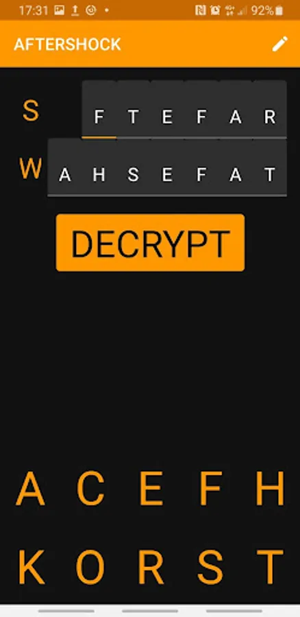 To use SARNEG you first agree upon a ten-letter word with no repeating letters. A couple of examples of such words include: AFTERSHOCK and BLACKHORSE. You could also choose to use a combination of two words, such as COMBATHELP. The word or words are simply a mnemonic to aid in remembering a sequence of ten letters.