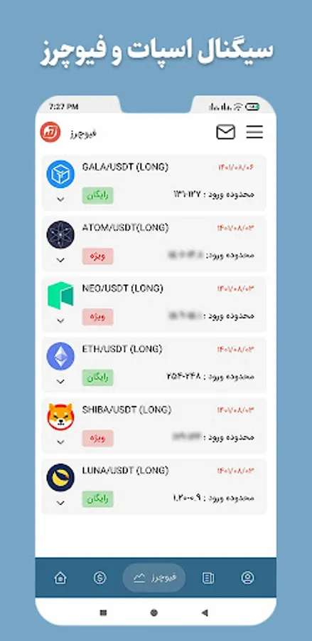 We have trading signals every day. Our trading signals are inserted into this application. These signals include futures, spot, pump, and hold trading. Also, entry points, exit range, targets, loss limit, and holding period are included.