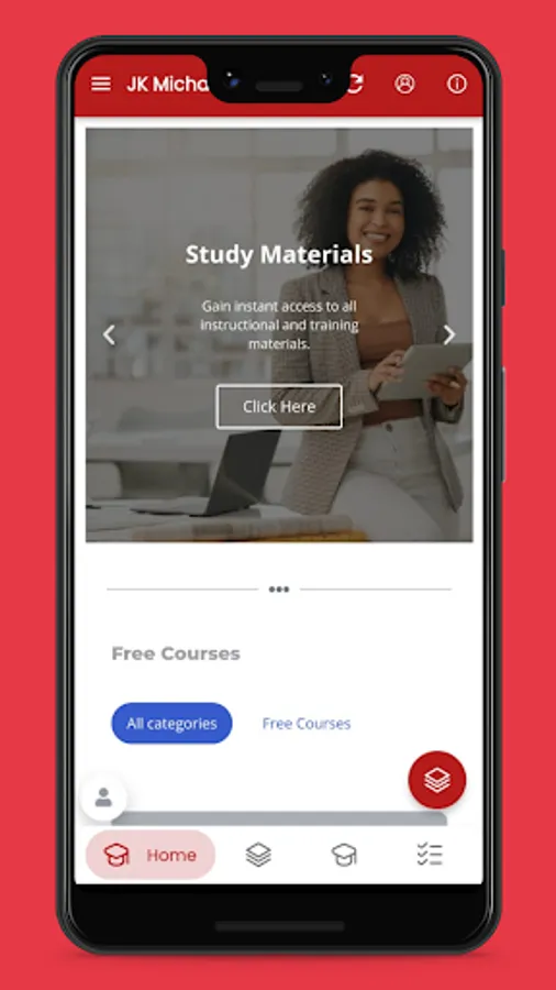 JK Michaels Mobile app is developed for students and alumni to provide easy access to study materials, exam prep quizzes, and interactive environments.