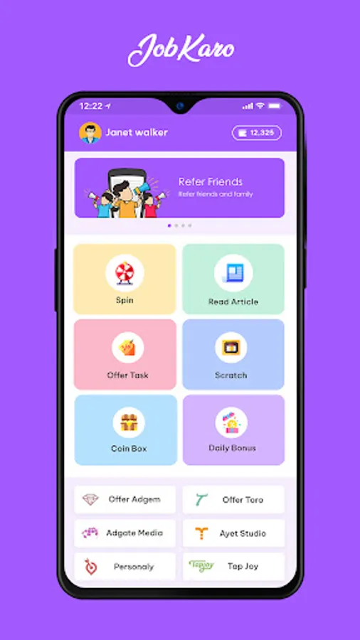 JobKaro - Get Daily Work provide good feature of app where user can get reward by completing simple task like daily bonus, offer wall, survey, extra bonus, coin box, play spin and Scratch card