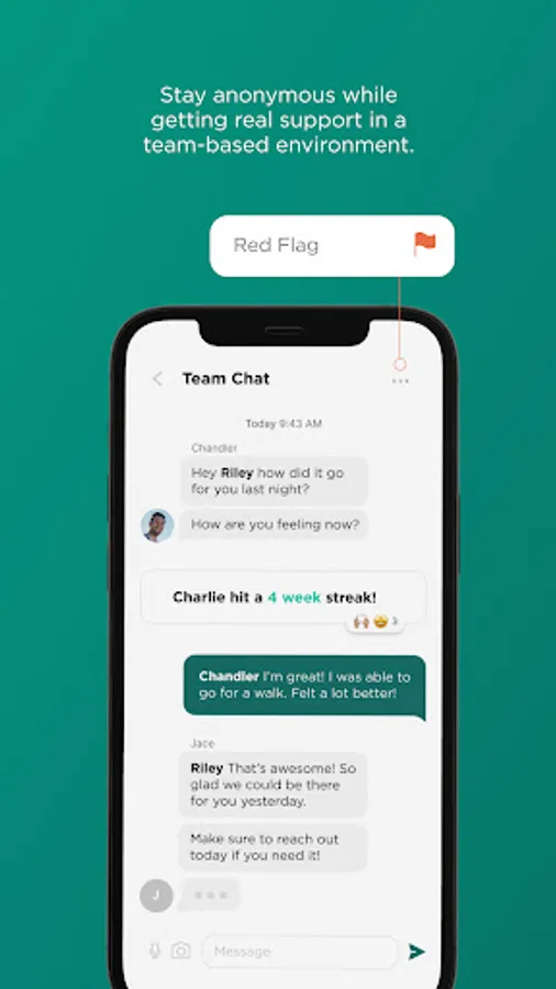 Once you’re in your team, Relay makes it easier to reach out when vulnerable, track your goals alongside your team, and find healing through turning outwards.