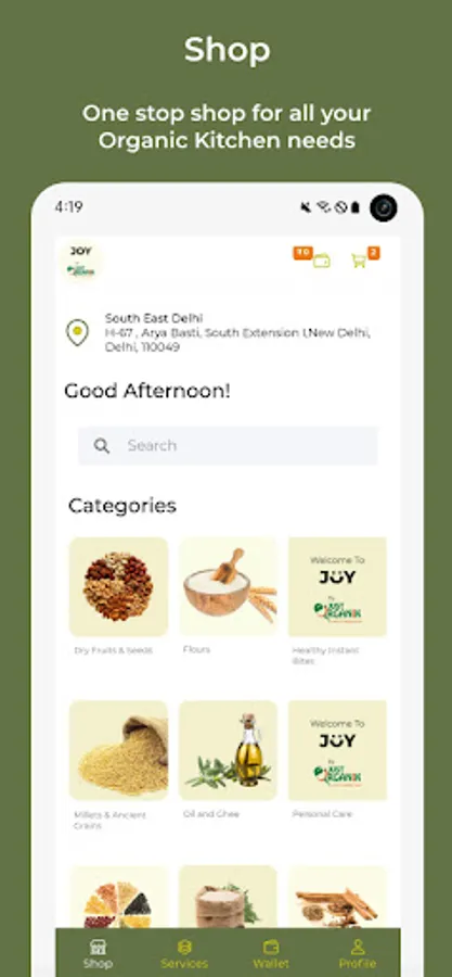 Just Organik JOY is an initiative to provide the food grown ‘in harmony with nature’ directly to every kitchen. This wallet based App with doorstep delivery offers certified organic grocery for the customers to ensure zero gaps in their wellness journey. Order placement takes through the mobile application that aids convenient and hassle free organic grocery shopping online.