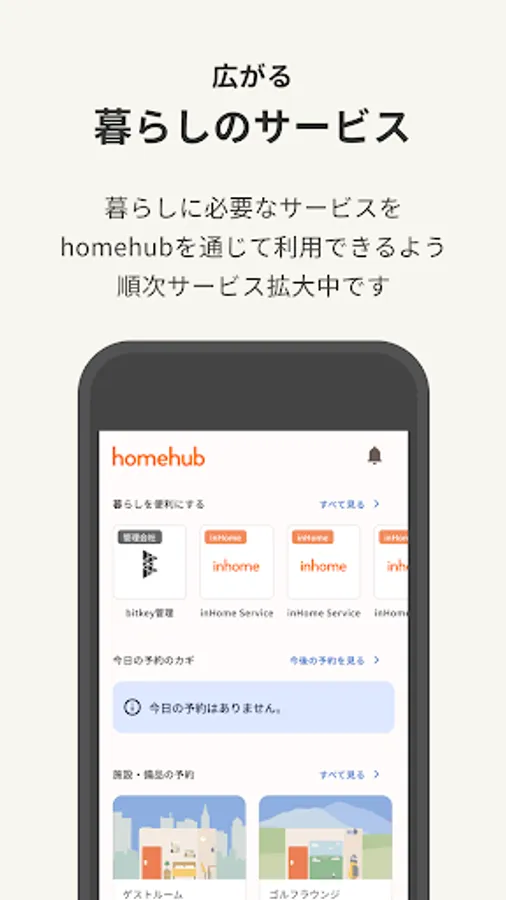 "Homehub" connects various "people", "things" and "services" related to "living".