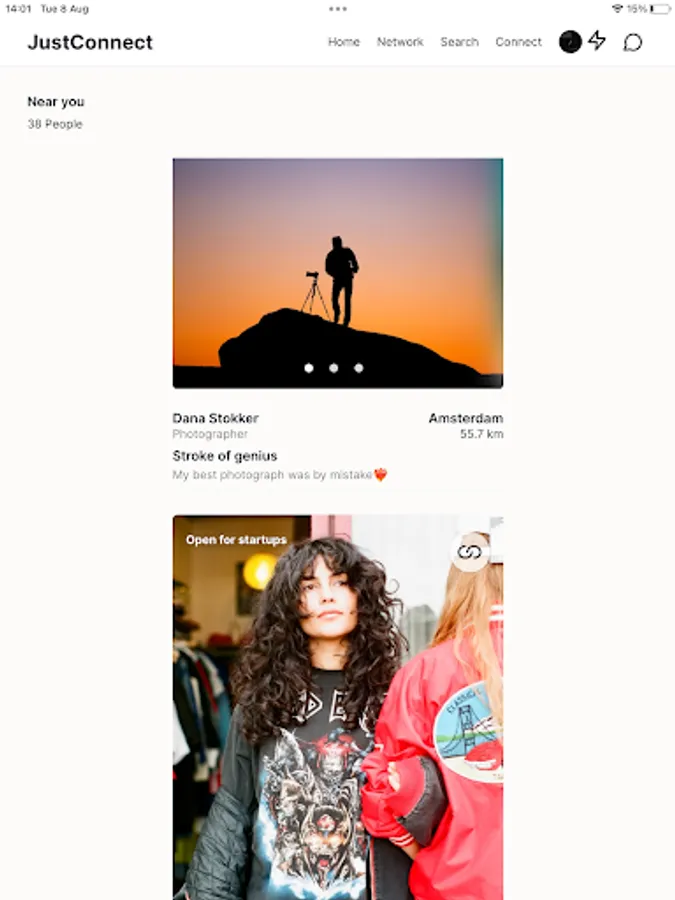 JustConnect is a networking app built by and for creatives and digital nomads. It revolutionizes the networking game for creatives, freelancers, and digital nomads worldwide. Forget the corporate clutter on existing platforms. It's time for something new and you are just our cup of tea.