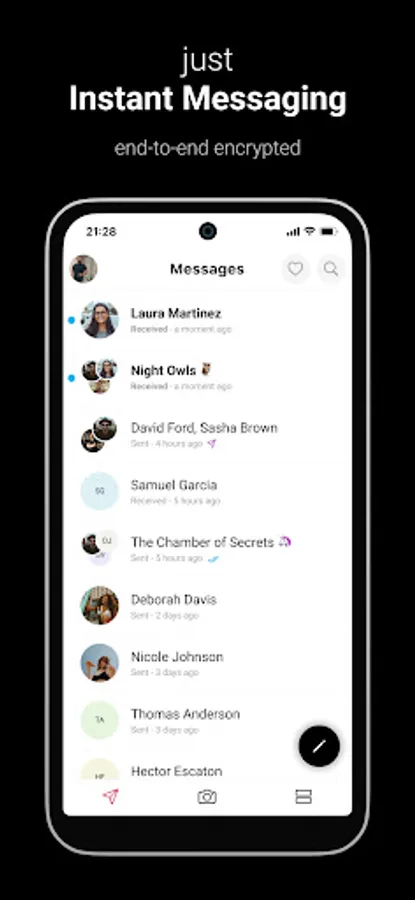 No ads, no tracking, no data selling, no magical algorithms - just instant messages, just instant moments.