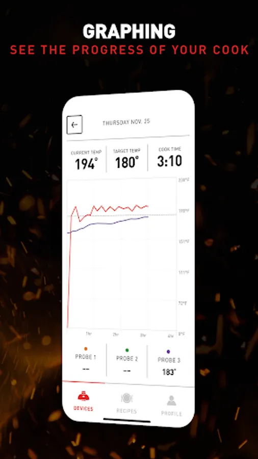 o Graphing: See the progress of your cook over time so you can better control your entire grilling experience