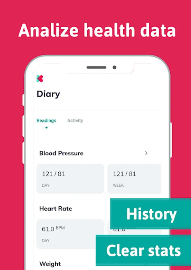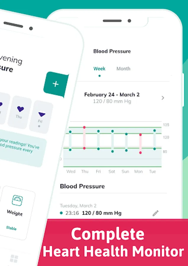 Our bp monitor is created especially for patients with high blood pressure and heart disease who need to log readings regularly. Thats why, stats and bp log are very clear and easy to check.