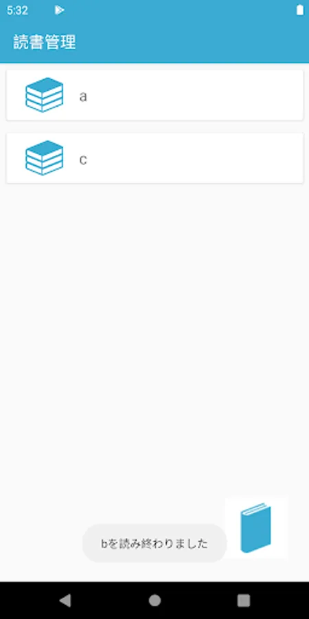 本のタイトルを入力して、読み終わったらその本のタイトルをタップするだけ。