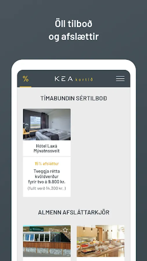 A user must be a member of KEA to enjoy discounts and benefits. To become a member of KEA, you must apply for membership on the company's website https://www.kea.is