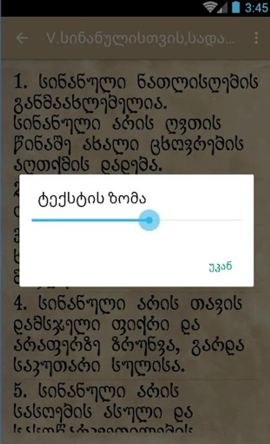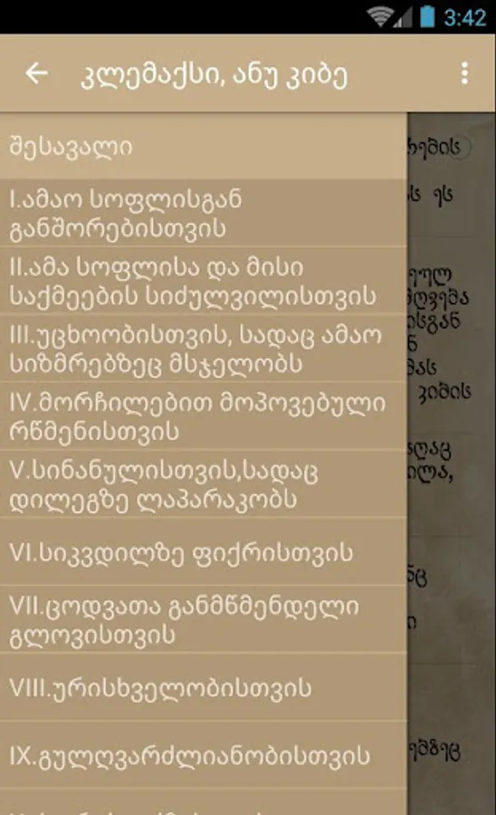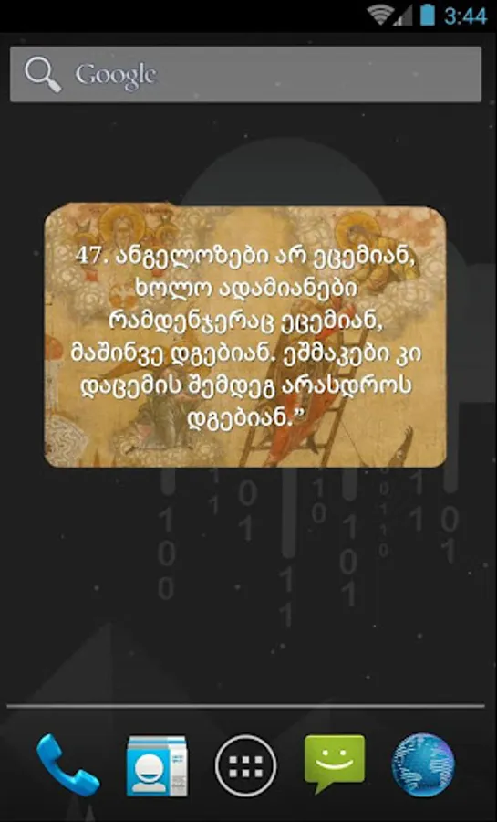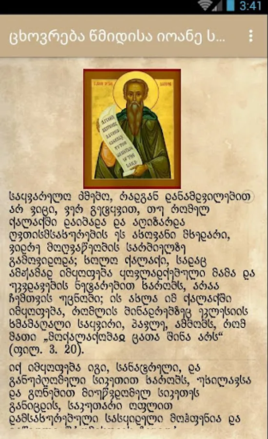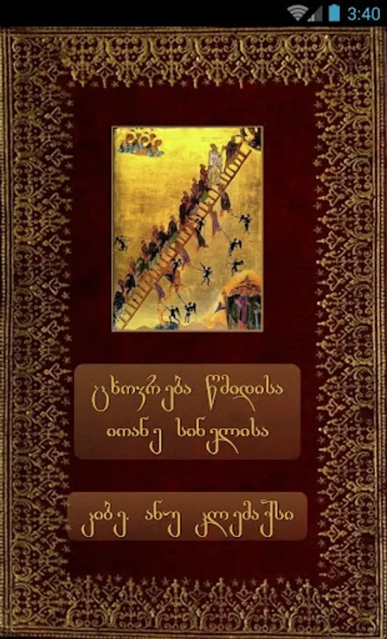 St. John of Sinai klemaksis electronic book version, the text of the chapters are arranged according to increasing and reducing the font, each article to share, as well as the application comes with a widget (Widget) placed with a randomly selected article will change periodically.