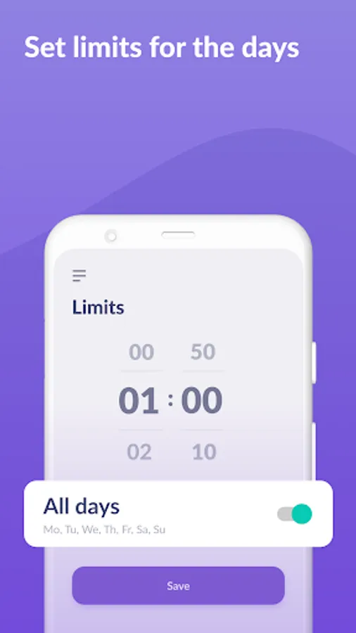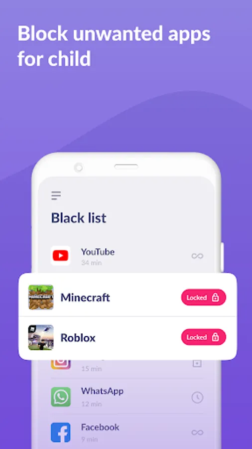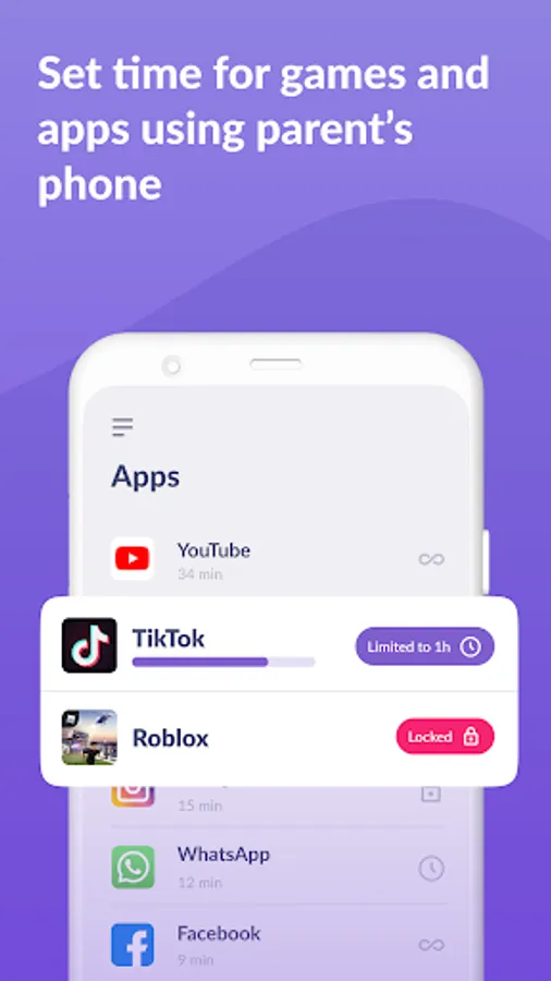 App usage limiter - Set a screen time limit on your child's phone for distracting apps, games and social media, the app will behave like a child lock app. It also enables child lock, kids mode and parental controls.