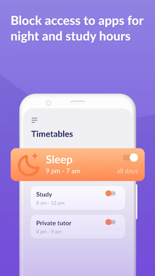 Usage schedule - Select the child's schedule for productive schooltime and a recovering sleep during bedtime. The child monitoring app & child lock will take into account the time your child spends on games, social media and entertainment apps and will limit their usage as well as limit phone usage